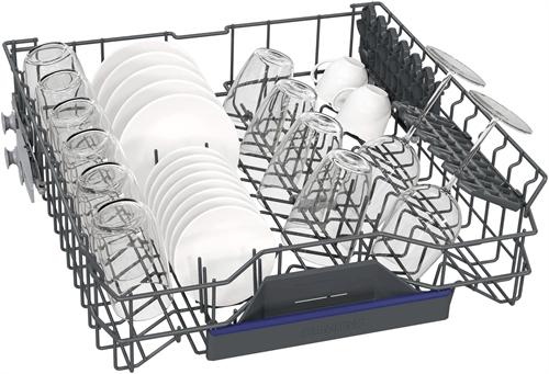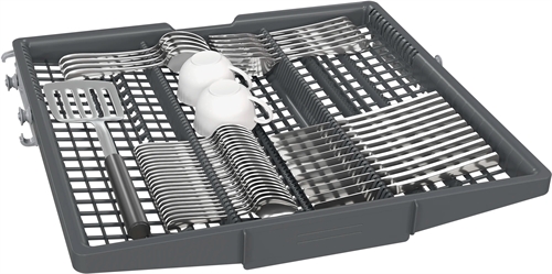 varioDrawer-topkurv giver dig et ekstra niveau i opvaskemaskinen. Med den specielle form giver den ikke bare plads til bestik, men også til grydeskeer, salatbestik og mindre servicedele, som f.eks. espressokopper. Og da det ikke længere er nødvendigt med en bestikkurv i underkurven, er der nu plads til service til 14 personer.