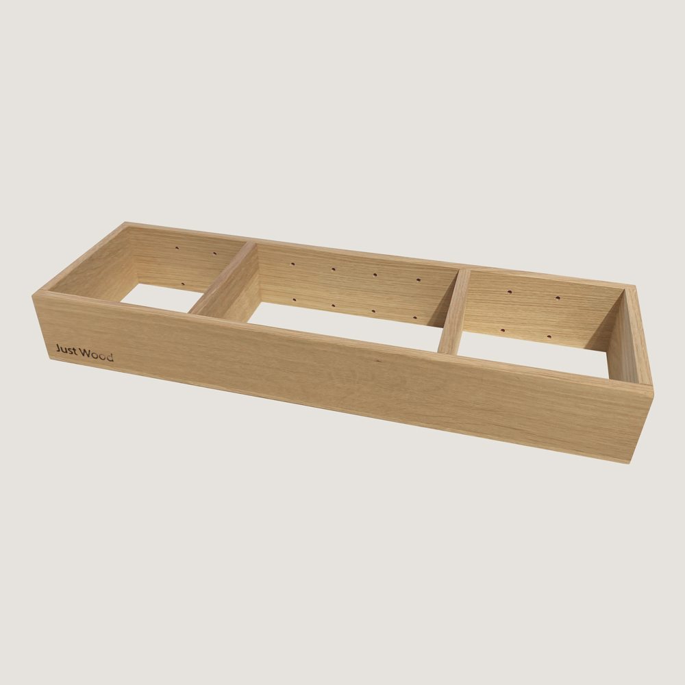 Skuffeinddeleren leveres færdigsamlet og kan med fordel bestilles sammen med dit Just Wood badmøbel for en gennemført og funktionel løsning.