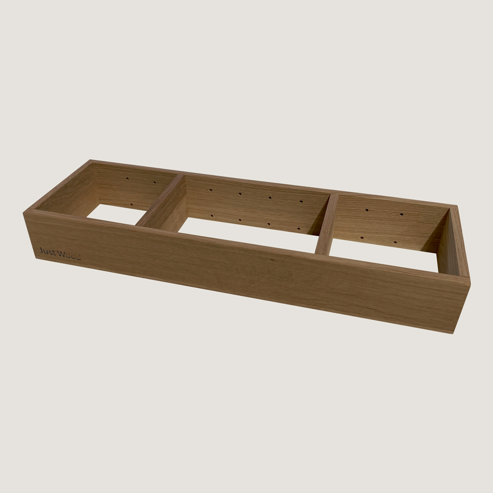 Skuffeinddeleren leveres færdigsamlet og kan med fordel bestilles sammen med dit Just Wood badmøbel for en gennemført og funktionel løsning.