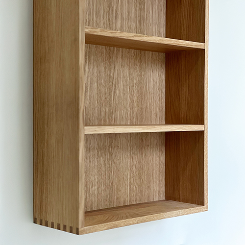 Just Wood vægreolen er snedkerfremstillet i massiv olieret egetræ. Just Wood vægreolen er et af vores mindste produkter men alligevel rummer den detaljer som fingertappede samlinger i hjørnerne, vendbart ophæng og massiv olieret eg i alle Just Wood farver.