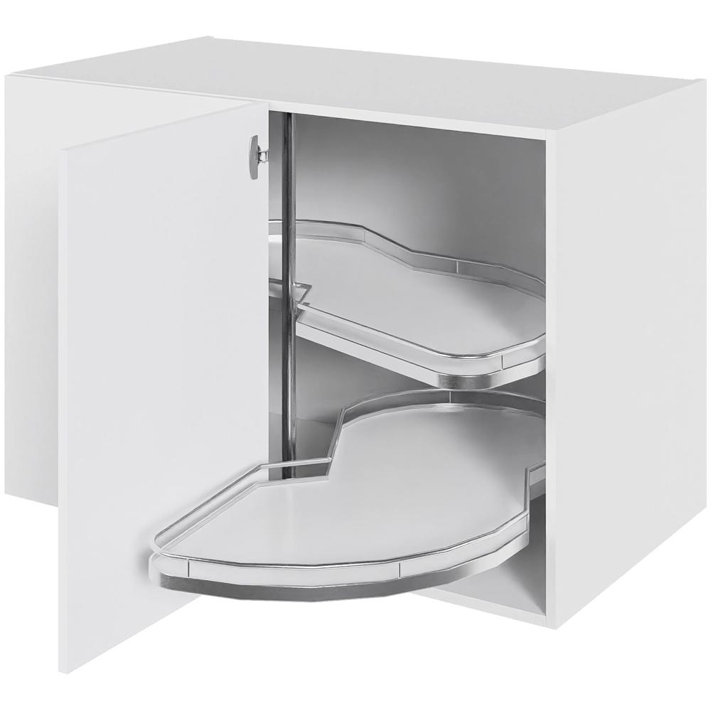 Et praktiske hjørneskab med mange funktioner i et skab. Dette skab har Le mans karrusel og en låge plus et blændstykke. Billedet viser venstre hængsling.