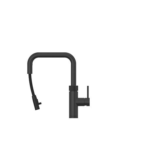 Flex-hanen leverer varmt, koldt og kogende vand i én og samme hane kombineret med en udtrækbar slange, hvor slangen kan udtages op til 30 cm. På Quooker Flex hanen er grebet til koldt og varmt vand adskilt fra grebet til kogende vand.